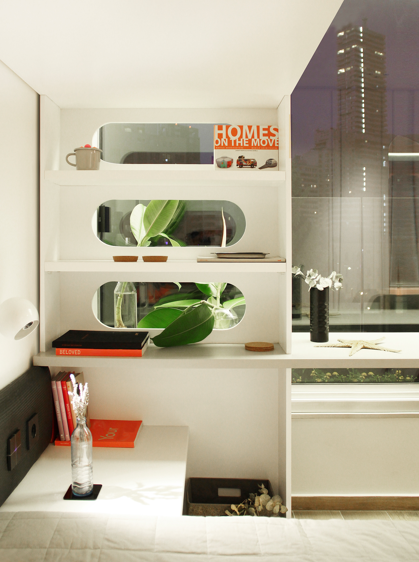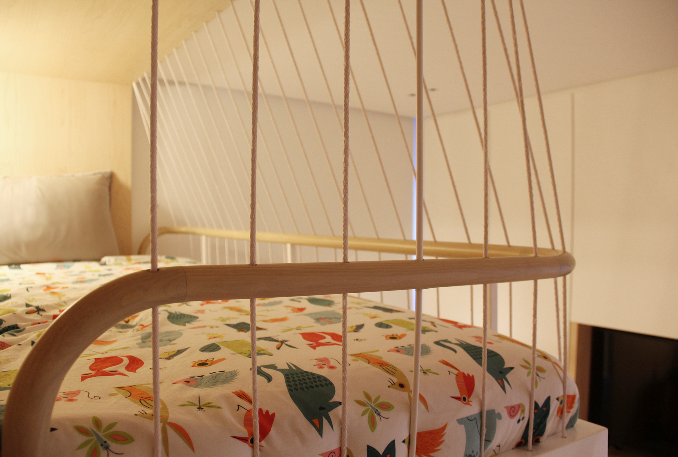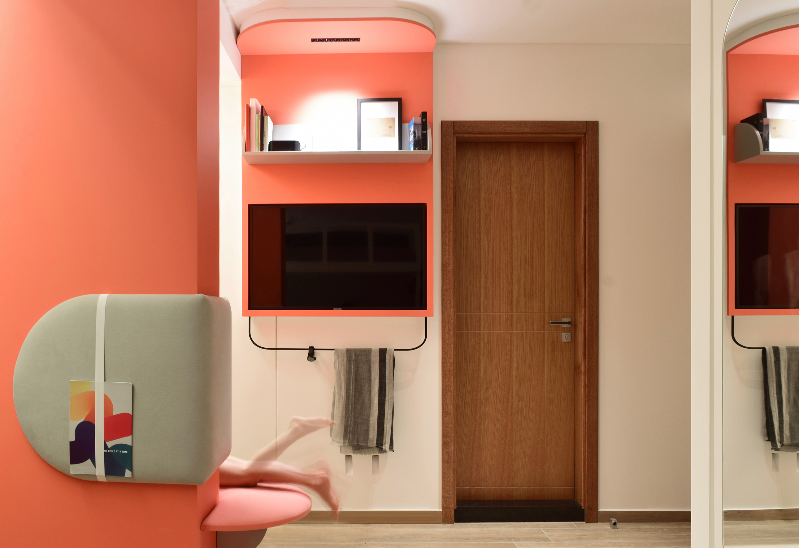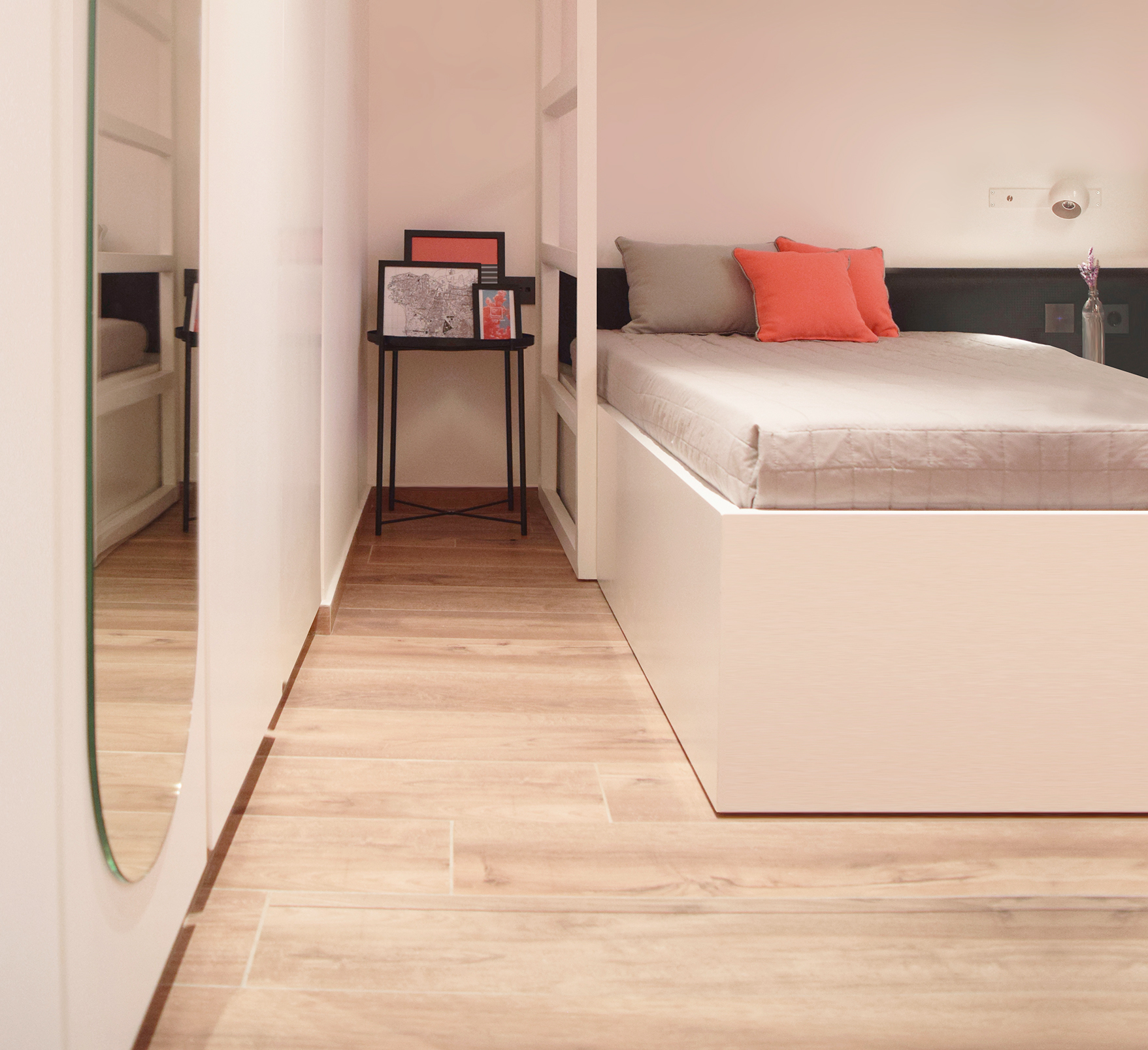 The Penthouse is urban but nevertheless cozy, warm but open to the surroundings. It is flooded with light, but also filled with shadows, with modern engineering and using natural materials. These were the first clear concepts agreed with the owners for their future apartment. Materials are light, contrasted with colorful and vibrant furniture. The volumes consisted of light wood veneer, shiny white wood with the repetitive geometric volumes.